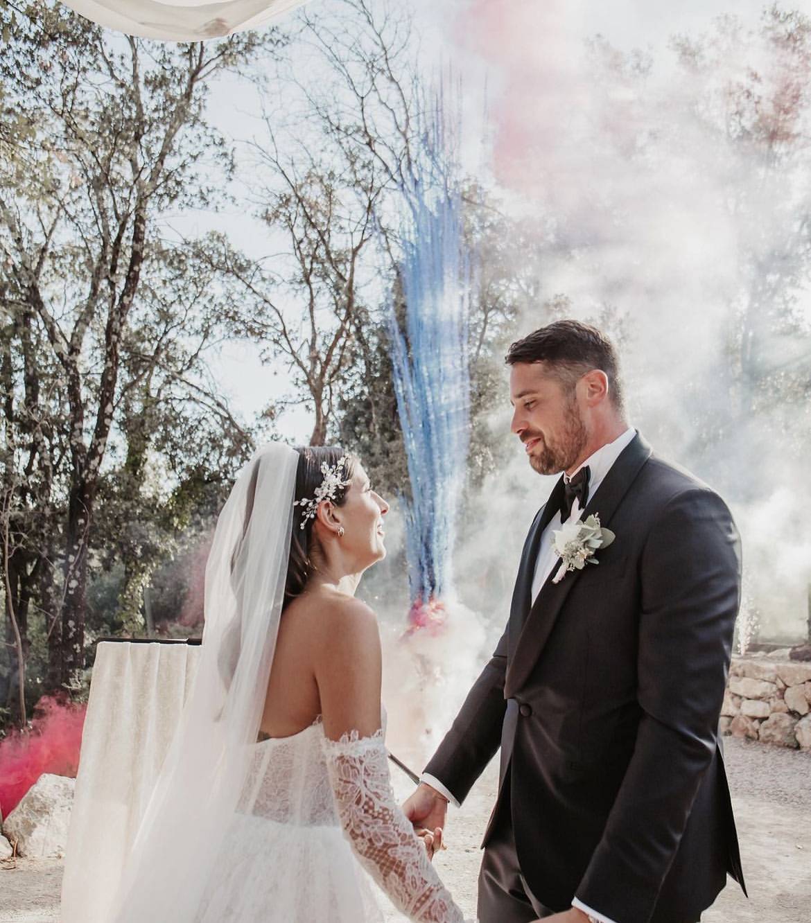 À l’occasion de leur mariage organisé au Chateau de Taradelle, nos mariés ont souhaité renforcer l’ambiance visuelle de la cérémonie avec des effets de fumée colorée en plein air les entourant. Le cadre naturel et ouvert du domaine s’y prêtait parfaitement.