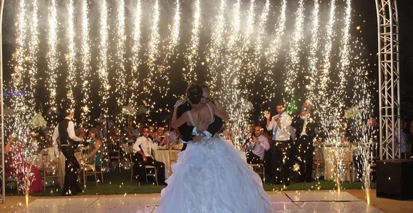 A l'occasion de leur mariage, nous avons réalisé un show d’étincelles froides sous une épaisse fumée lourde.Cet effet a été utilisé pour mettre en valeur la première danse de nos mariés tout en garantissant une sécurité optimale.